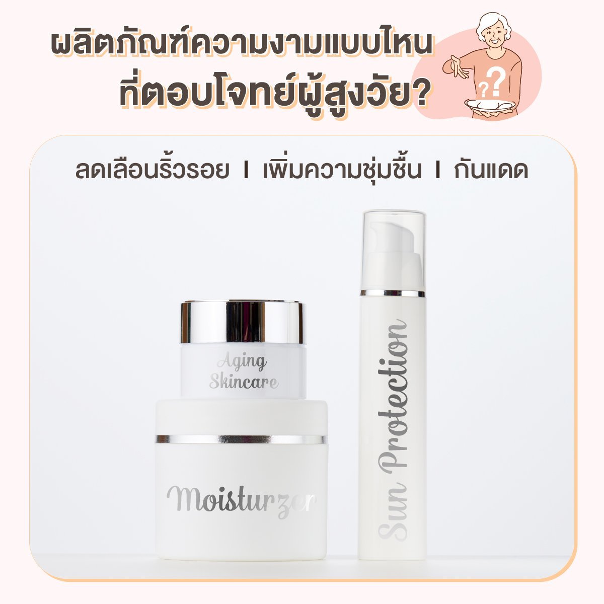 เมื่ออายุมากขึ้น ย่อมมีปัญหาผิวมากขึ้นตามไปด้วย ไม่ว่าจะเป็น จุดด่างดำ ความแห้งกร้าน ริ้วรอยและผิวเสื่อมสภาพตามอายุ ทั้งนี้ผู้สูงวัยในปัจจุบัน ไม่ได้เหมือนผู้สูงวัยในอดีต ที่ปล่อยตัวโทรม ดังนั้นจึงมีความต้องการผลิตภัณฑ์ความงามที่ตอบโจทย์ เพื่อดูแลผิวพรรณ ชะลอวัย ให้สุขภาพดีอยู่เสมอ