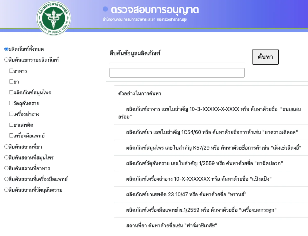 1. ตรวจสอบเลขที่จดแจ้งผลิตภัณฑ์