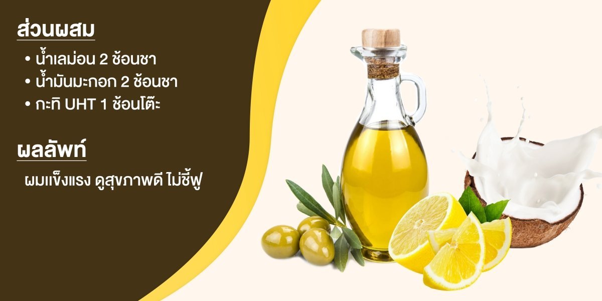 1.ผสมน้ำเลม่อน น้ำมันมะกอกและกะทิในภาชนะ