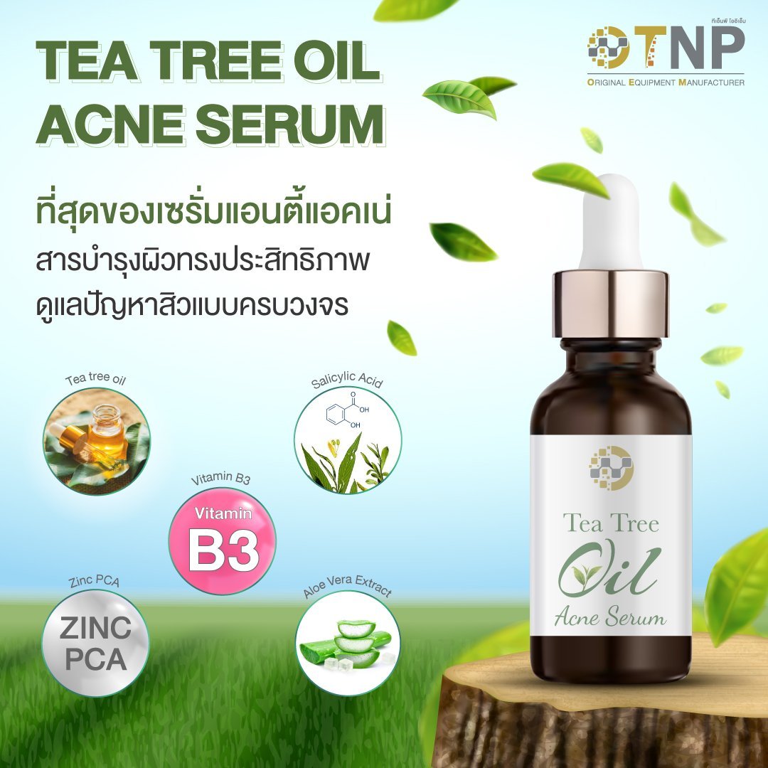เซรั่มทีทรีออยล์ ช่วยดูแลผิวเป็นสิวพร้อมให้ผิวกระจ่างใสไร้รอยจุดด่างดำจากสิว แนะนำสำหรับคนเป็นสิวที่มีรอยจากสิวด้วย เซรั่มให้สัมผัสนุ่มลื่น ซึมไว บางเบาสบายผิว เหมาะสำหรับทุกสภาพผิว มีกลิ่นหอมจากทีทรี ใช้ได้ทุกวันทั้งตอนเช้าและก่อนนอน เหมาะมากกับสิวทุกชนิด ทั้งสิวหัวดำ หัวขาว สิวอักเสบ สิวผด ไม่มีสารที่อาจก่อให้เกิดการระคายเคืองหรืออุดตันผิว เช่น แอลกอฮอล์ ซิลิโคน น้ำหอม ซัลเฟต