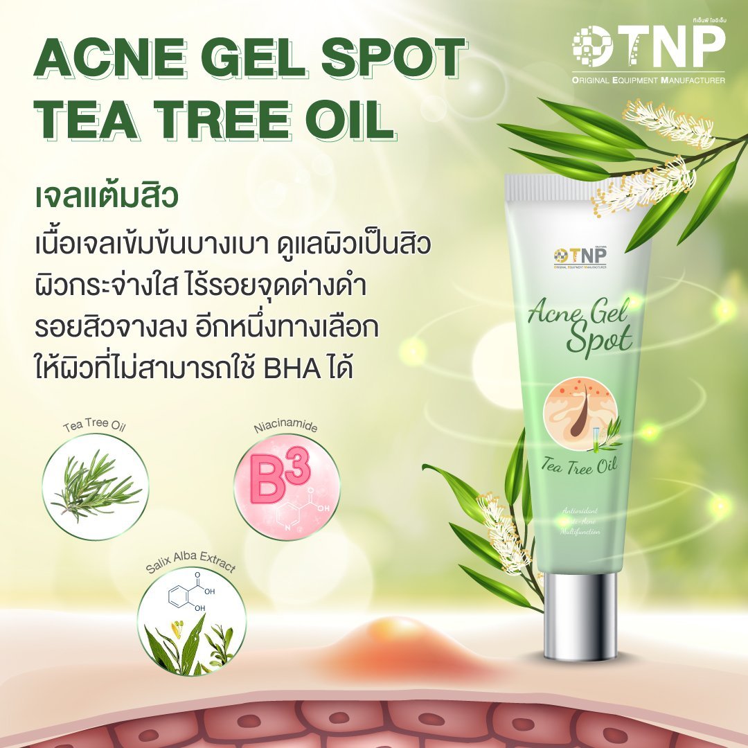 เจลแต้มหัวสิวทีทรีออยล์ ช่วยดูแลผิวเป็นสิวพร้อมให้ผิวกระจ่างใสไร้รอยจุดด่างดำจากสิว รอยสิวจางลง อีกหนึ่งทางเลือกให้กับผิวที่ไม่สามารถใช้ BHA ได้ เนื้อเจลเข้มข้นแต่บางเบา ซึมไว ไม่เหนอะหนะ แต่งหน้าต่อได้ เหมาะสำหรับทุกสภาพผิว มีกลิ่นหอมจากทีทรี ใช้แต้มสิวเกิดใหม่ได้ทุกวันทั้งตอนเช้าและก่อนนอน