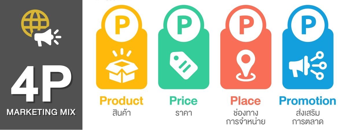 Place (สถานที่/ช่องทางการจำหน่าย) เช่น การขายผ่านหน้าร้าน การขายผ่านการสั่งซื้อ การขายผ่านพ่อค้าคนกลาง
