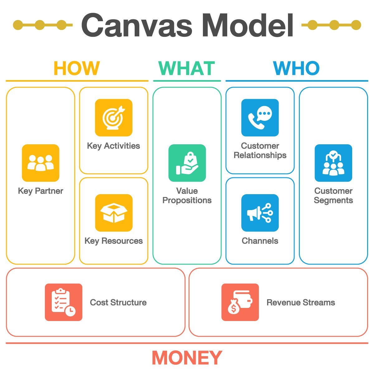 โมเดลที่ทำให้เห็นภาพรวมของการทำธุรกิจได้อย่างรวดเร็วภายในกระดาษแผ่นเดียว โดยตอบคำถามสำคัญ 4 เรื่อง คือ Who, What, How, Money