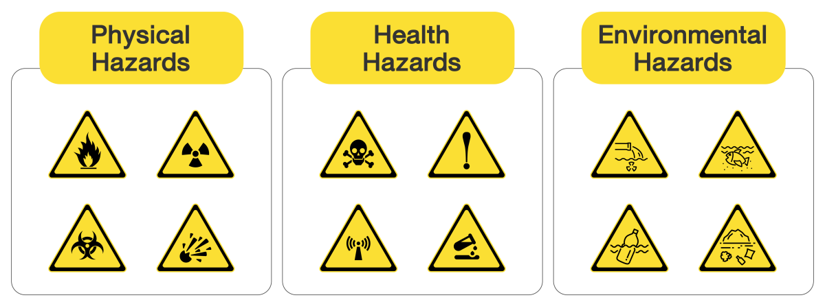แสดงถึงความเป็นอันตรายของวัตถุดิบ หากเป็นวัตถุอันตรายจะต้องจำแนกประเภท ติดข้อความแสดงข้อควรระวัง และติดฉลากเตือนความเป็นอันตรายตามระบบ GHS