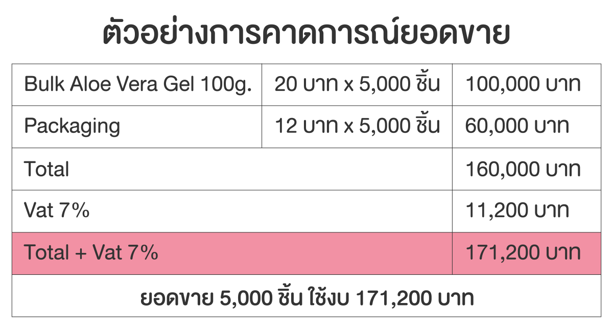 เมื่อกำหนดเป้าหมายลูกค้า แนวโน้ม และคู่แข่งได้แล้ว สิ่งสำคัญต่อมาคือการรู้ต้นทุนและการพยากรณ์ยอดขาย ซึ่งหากไม่มีโรงงานเครื่องสำอางเป็นของตนเอง ก็สามารถมองหาโรงงานที่รับผลิตเครื่องสำอางแบบครบวงจรได้ ทางโรงงานจะเสนอราคาต้นทุนเครื่องสำอางต่อชิ้นเพื่อให้เราตัดสินใจ ซึ่งในต้นทุนนั้นจะรวมมาแล้วจากหลายอย่างไม่ว่าจะเป็น ค่าแรง ค่าวัตถุดิบ ค่าทรัพยากร ค่าเสียเวลา ค่าความเสี่ยง และค่าเสียโอกาส และในเครื่องสำอางจะมีต้นทุนสูตรตำรับที่มีความสำคัญมาก มีการคิดต้นทุนเนื้อผลิตภัณฑ์ต่อ 1 กิโลกรัม และต่อ 1 ชิ้น จากนั้นนำไปคิดรวมกับต้นทุนอื่นๆ เช่น ต้นทุนวัสดุบรรจุ ต้นทุนการบรรจุ เป็นต้น แล้วออกมาเป็นต้นทุนผลิตภัณฑ์ต่อ 1 ชิ้น จะทำให้เราได้รู้ว่าต้นทุนเครื่องสำอาง 1 ชิ้นนั้นอยู่ที่ราคาเท่าไร เพื่อที่จะได้กำหนดราคาขายที่ถูกต้อง
