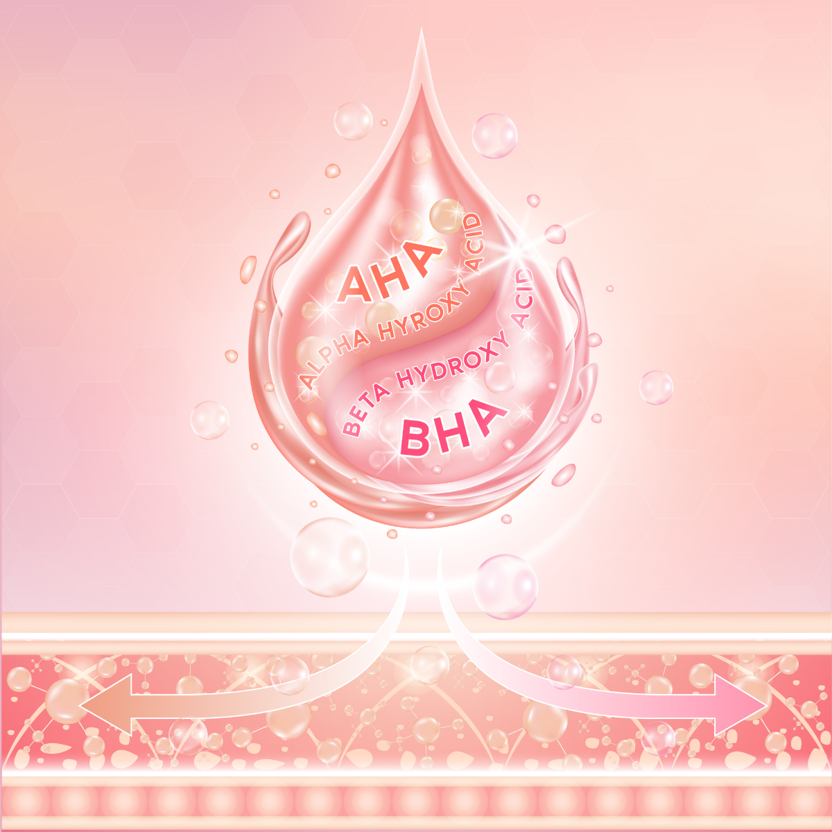 HA หรือ Hydroxy Acid เป็นสารผลัดเซลล์ผิวแบบเคมี มีความสามารถในการสลายเซลล์ผิวที่ตายแล้วบนชั้นผิว เผยผิวใหม่ที่เรียบเนียน ลดเลือนริ้วรอย ส่งเสริมการผลิตคอลลาเจน เปลี่ยนผิวที่หมองคล้ำให้กระจ่างใส และกระตุ้นการสร้างเซลล์ผิวใหม่ไปพร้อมๆ กัน มี 4 กลุ่ม ได้แก่