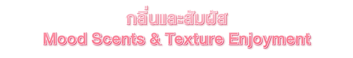กลิ่นช่วยทำให้เรารู้สึกผ่อนคลาย เช่น กลิ่นน้ำหอม อโรม่า หรือน้ำหอมที่สกัดจากดอกไม้ ผสานเนื้อสัมผัสที่มอบความสุขให้กับผิว มีความนุ่มลื่น ให้ความรู้สึกเบาสบายผิว