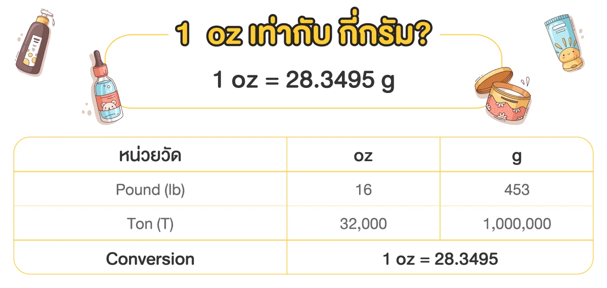 ในฉลากเครื่องสำอาง ปริมาณสุทธิหรือน้ำหนักสุทธิที่สังเกตเห็นได้บ่อย ๆ จะเป็นหน่วย g คือ กรัม หรือ ml คือ มิลลิลิตร แต่นอกจาก 2 หน่วยนี้แล้วยังมีรูปแบบอื่นอีกด้วย ซึ่งก็คือ oz และ fl oz อาจจะดูแล้วคุ้นตาแต่ก็ไม่รู้ว่าหมายความว่าอย่างไร