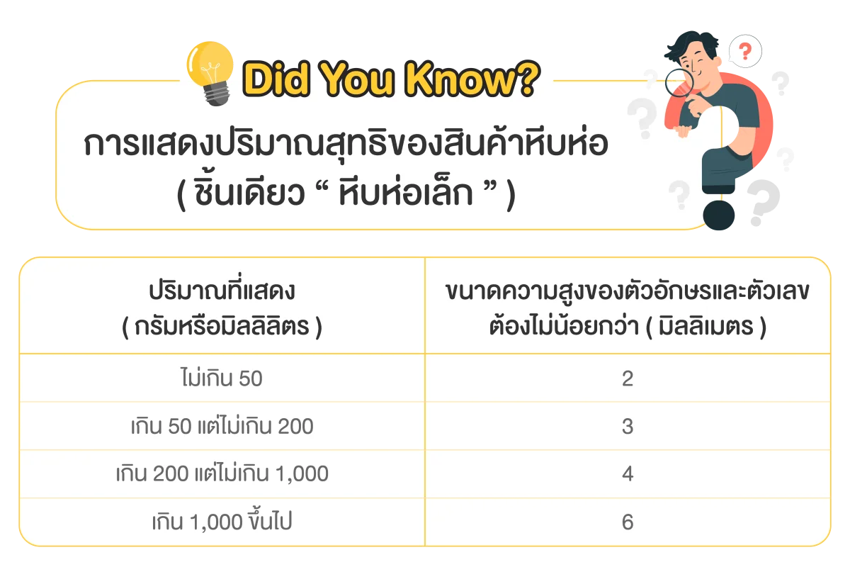 ปริมาณสุทธิ + ตัวเลขแสดงปริมาณสินค้า หรือ แสดงเพียงปริมาณสินค้าอย่างเดียวก็ได้เช่นกัน