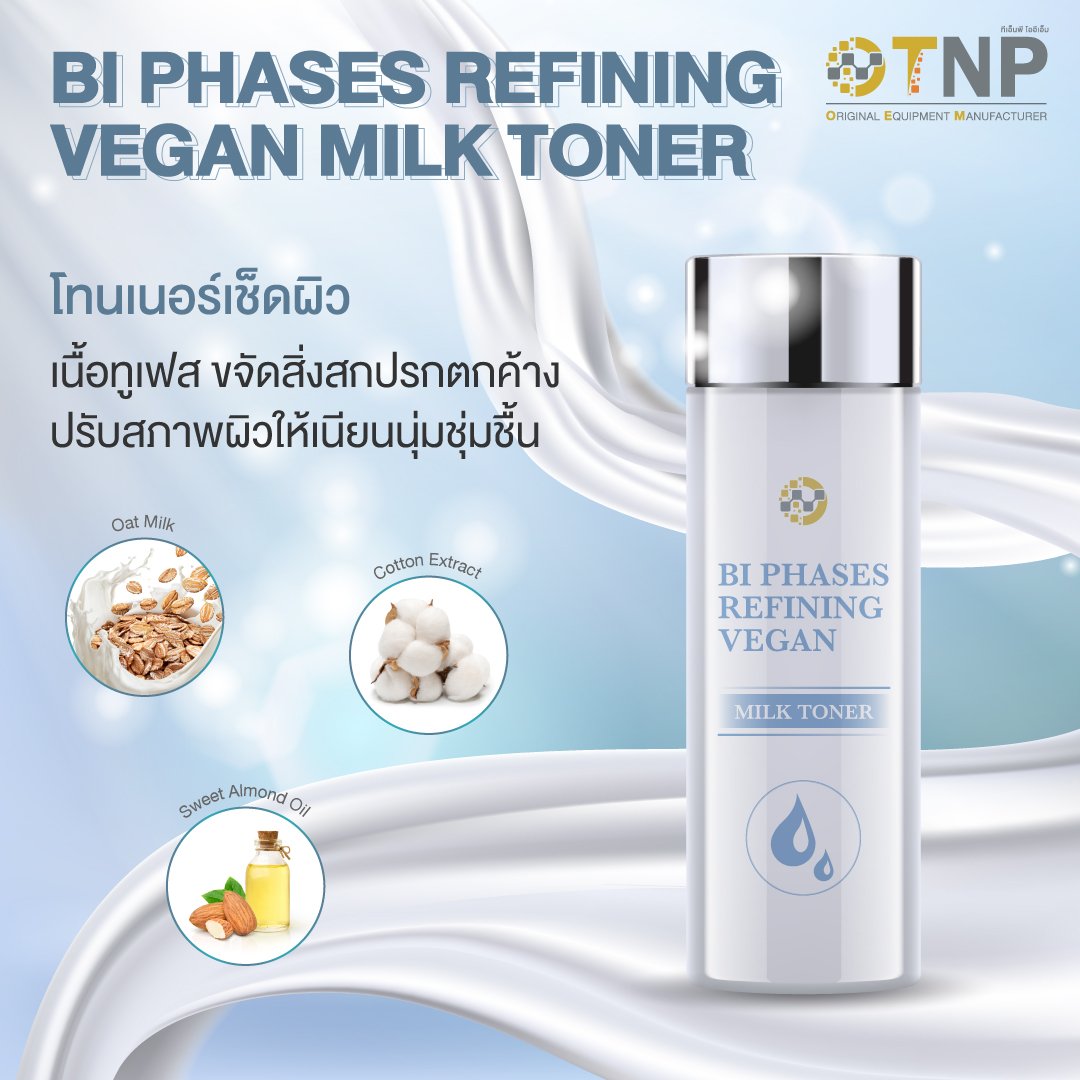 โทนเนอร์เช็ดผิวหน้าสูตรวีแกน เนื้อสัมผัส 2 ชั้น เขย่าก่อนใช้ ผสานเป็นเนื้อน้ำนมนุ่มละมุน ช่วยทำความสะอาดสิ่งสกปรกตกค้างบนใบหน้าให้ออกหมดจด