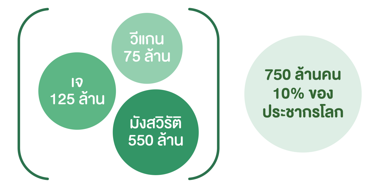 จากสมาชิก vegetarian society เพียงหลักร้อยในตอนนั้น กาลเวลาผ่านมาแล้วกว่า 70 ปี ในปัจจุบัน มีชาวมังสวิรัติ เจ และวีแกน เติบโตขึ้นมากจากทั่วทุกมุมโลกถึง 750 ล้านคน หรือ 10% ของประชากรโลก โดยมีสหรัฐอเมริกาเป็นผู้นำเทรนด์ และเป็นตลาดวีแกนที่ใหญ่ที่สุดในโลก