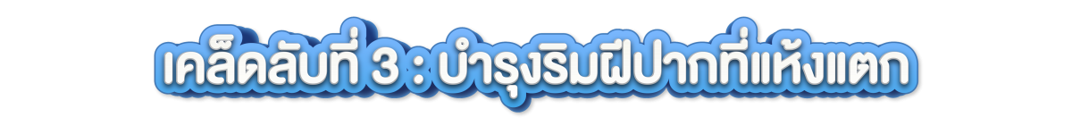 หน้าหนาวกับปากแตกเป็นของคู่กัน ลืมบำรุงวันเดียวริมฝีปากก็แห้งซะแล้ว ปากแห้งแตกแบบนี้อย่างแรกเลยคือเอาผิวส่วนที่ลอกออกเป็นแผ่นออกไปก่อน ขัดริมฝีปากเบา ๆ ด้วยออยล์บำรุงริมฝีปาก หรือ สครับสำหรับริมฝีปาก แล้วใช้ผ้าขนหนูอุ่น ๆ เช็ดออก หลังขัดเซลล์ผิวที่ตายออกไปแล้วก็รีบบำรุงด้วยลิปมาส์กทันที เพื่อฟื้นฟูให้เซลล์ผิวกลับมาแข็งแรง จากนั้น ทุกวันตอนเช้าให้ทาลิปมันหรือลิปบาล์มบำรุงผิวริมฝีปาก ตามด้วยลิปกันแดดที่มีค่า SPF50+ PA++++ เพราะริมฝีปากที่แห้งลอกเกราะป้องกันผิวจะยังทำงานได้ไม่เต็มที่ อ่อนไหวต่อแสงแดดได้ง่าย จึงต้องตบท้ายด้วยลิปกันแดดทุกครั้งก่อนออกจากบ้าน ซึ่งลิปกันแดดที่ป้องกันรังสีUVB ได้มากกว่า 50 เท่า และ ป้องกัน UVA ได้มากกว่า 16 เท่า จะตอบโจทย์มากที่สุด ปกป้องแสงแดดแบบเต็มขั้น ก่อนนอนอย่าลืมบำรุงด้วยลิปมาส์ก ตื่นเช้ามาริมฝีปากจะได้ยังคงดูชุ่มชื้นสุขภาพดี