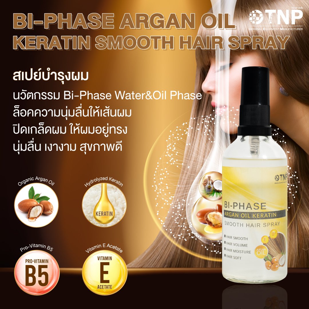 สเปรย์บำรุงเส้นผมสูตรเฉพาะ TNP นวัตกรรม Bi-Phase บำรุงลึกถึงแกนผมเพิ่มความนุ่มลื่นให้เส้นผม ปิดเกล็ดผม ให้ผมเงางาม สุขภาพดี