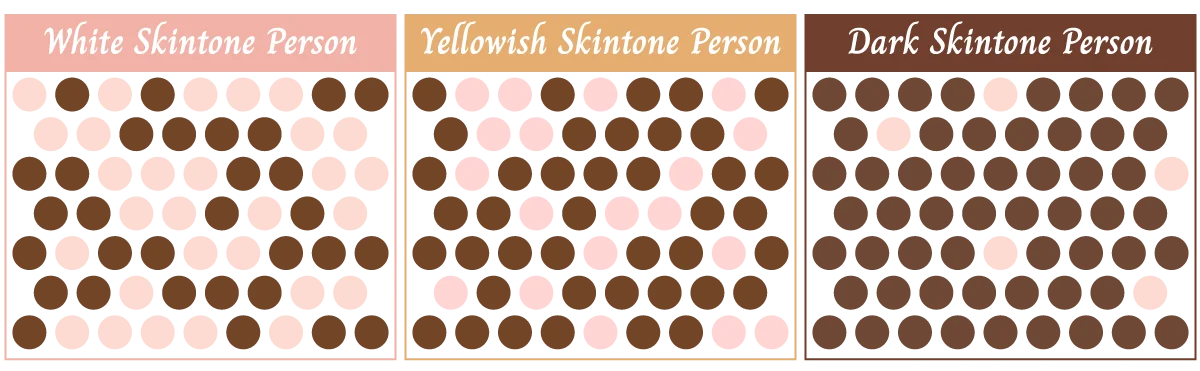 1. ยูเมลานิน (Eumelanin) เป็นเม็ดสีที่มีสีดำ หรือสีน้ำตาล ซึ่งคนผิวสีเข้มจะมีเม็ดสีนี้ปริมาณมากกว่าคนผิวขาว