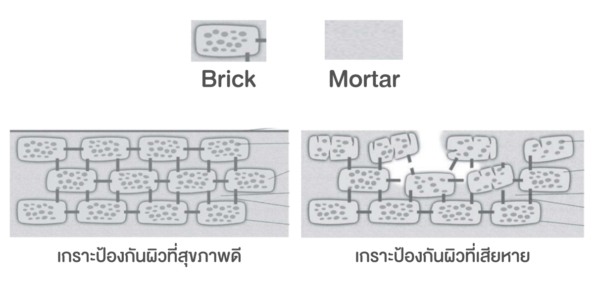 Stratum Corneum SC ผิวชั้นนอกสุดที่เป็นเกราะป้องกันผิวตามธรรมชาติ มีโครงสร้างแบบ "อิฐและปูน"