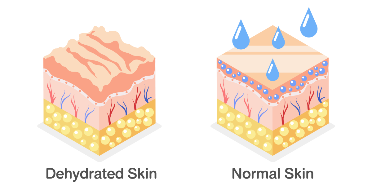 เมื่อผิวแห้งเกินไปก็จะสูญเสียความสามารถในการยืดหยุ่น ทำให้ผิวแตกและลอกเป็นขุยได้ง่ายขึ้น การที่ผิวลอกหมายถึงการผลัดเซลล์ผิวที่เร็วขึ้น กระตุ้นให้เกิดการผลิตเซลล์ผิวมากขึ้น เซลล์ที่กลายเป็นเกราะป้องกันผิวก็จะอ่อนแอลงอย่างมากเนื่องจากเวลาที่ใช้ในการเติบโตไม่เพียงพอ มีผลให้น้ำในผิวยิ่งระเหยออกไปเร็วขึ้น และผิวเกิดใหม่ที่อ่อนแอก็จะไม่สามารถต้านทานสิ่งแปลกปลอมได้ด้วยเช่นกัน อย่างไรก็ตาม น้ำเพียงอย่างเดียวไม่สามารถเพิ่มระดับความชุ่มชื้นของผิวได้ จำเป็นต้องมีชั้นไขมันป้องกันไม่ให้น้ำระเหยออกจากผิว มีส่วนผสมของมอยส์เจอไรเซอร์หลายประเภทที่ทำหน้าที่เพิ่มความชุ่มชื้นให้กับผิว เช่น Emoilient Humectant และ Occlusive