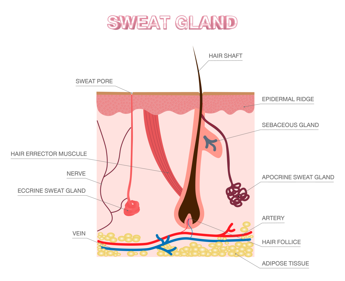 ร่างกายจะมีการขับเหงื่อออกมาทางผิวหนังเป็นปกติซึ่งจะช่วยควบคุมอุณหภูมิของร่างกายให้คงที่ ไม่ว่าจะในสภาพอากาศที่อบอุ่นหรือชื้น สถานการณ์ความเครียด หรือระหว่างการออกกำลังกายอย่างหนัก นอกจากนี้ยังทำหน้าที่กำจัดของเสียและสารพิษออกจากร่างกาย ต่อมเหงื่อกระจายอยู่ทั่วไปในผิวหนัง คนส่วนใหญ่มีต่อมเหงื่อหลายล้านต่อมกระจายอยู่ทั่วร่างกาย ต่อมเหงื่อที่มีมากมายนั้นเปิดโอกาสให้เกิดกลิ่นใต้วงแขนได้นั้นเอง โดยต่อมเหงื่อที่พบในผิวหนังของมนุษย์แบ่งออกเป็น 2 ประเภท ได้แก่ eccrine glands และ apocrine glands