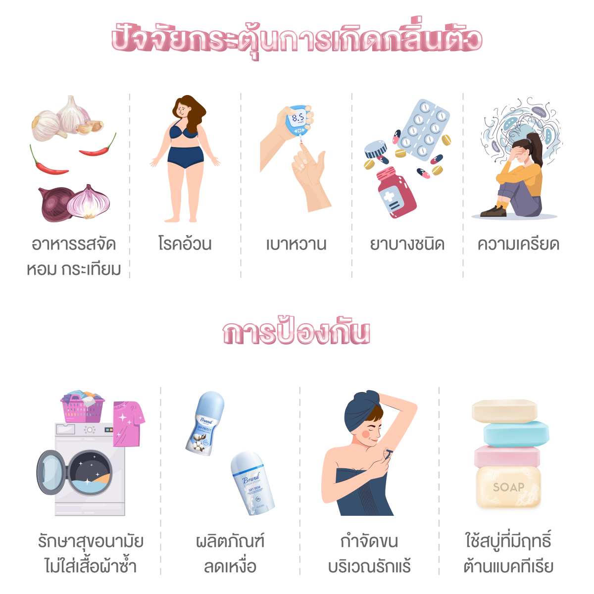 ความจริงแล้วเหงื่อนั้นไม่ใช่สาเหตุหลักของกลิ่นตัว โดยผิวของเราจะมีต่อมเหงื่อที่ใช้ผลิตเหงื่อเพื่อระบายความร้อนของร่างกาย แต่ตัวการในการสร้างกลิ่นคือแบคทีเรียประจำถิ่นนั่นเอง