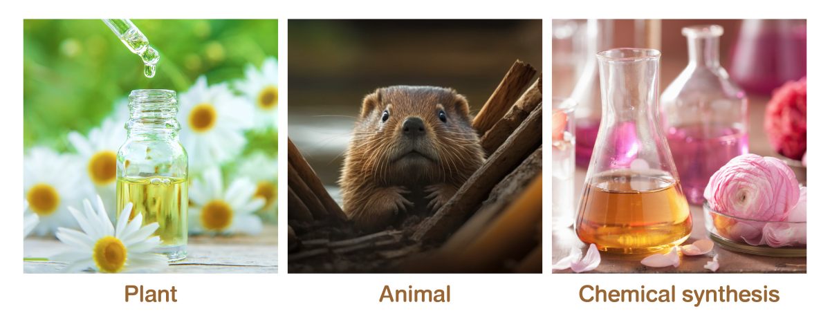 ฟราแกรนซ์จากสัตว์ เช่น วาฬ บีเวอร์ ชะมด กวางชะมด