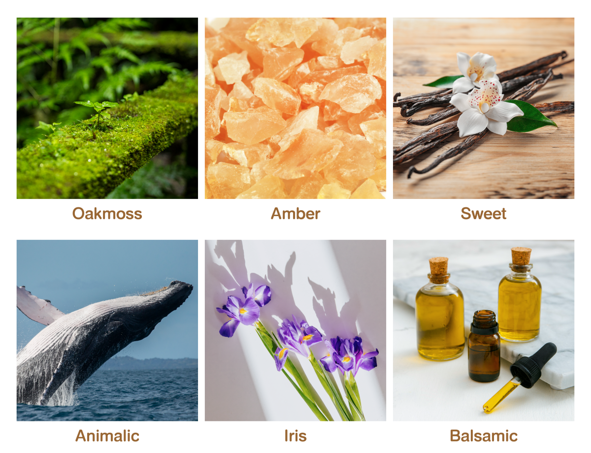 เป็นกลิ่นที่มีความนุ่มนวล อบอุ่น หอมหวาน และลึกล้ำ ได้มาจากเรซิ่นของไม้ เช่น amber core, cedramber, grisalva, timbertouch