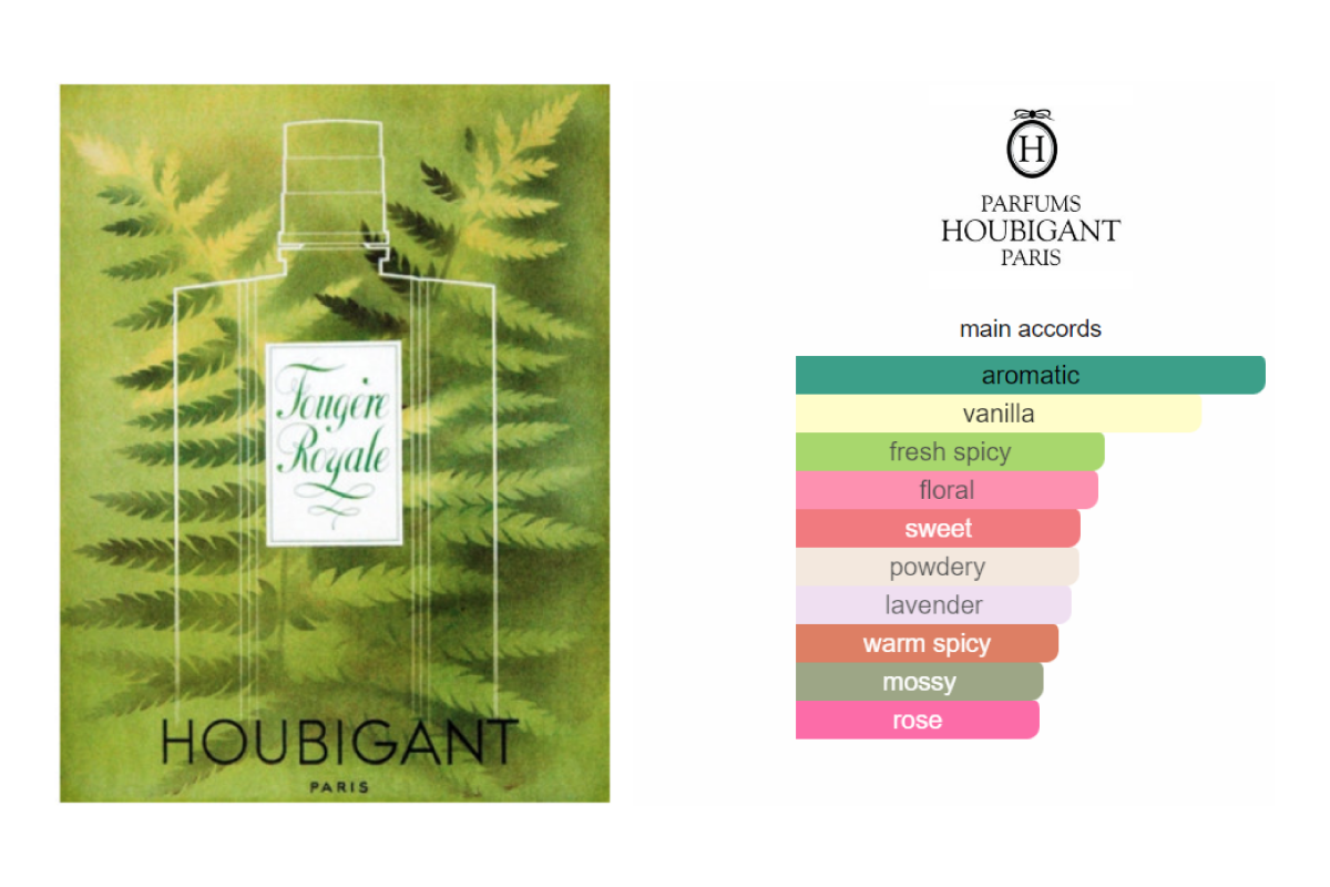 Fougere เป็นภาษาฝรั่งเศส หมายถึง ต้นเฟิร์น เป็นการผสมผสานระหว่าง lavender, oakmoss และ coumarin ดมแล้วรู้สึกจินตนาการถึงต้นเฟิร์น ทั้งที่ความจริงเฟิร์นไม่มีกลิ่น น้ำหอมที่ใช้กลิ่นแนวนี้ Fougère Royale
