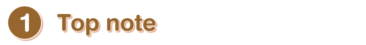 กลิ่นแรกที่รับรู้ได้ในทันทีที่เปิดใช้ ให้กลิ่นหอมสดชื่น สารประกอบมีโมเลกุลของกลิ่นเล็ก ระเหยได้ง่ายและรวดเร็ว คงอยู่ประมาณ 15 นาที
